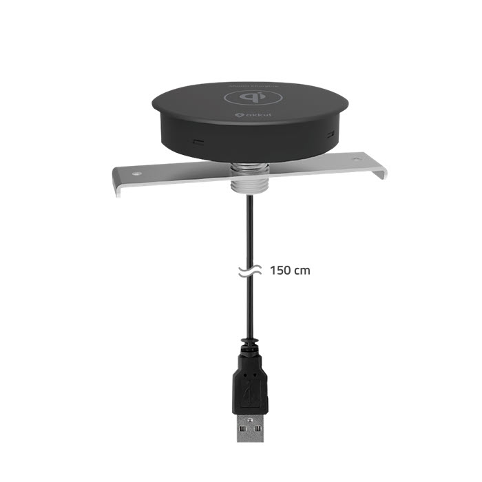 Mit diesen Möbel-Einbauladegeräten hat der Kabelsalat ein Ende! iPhones ab der Serie 8 aufwärts können kabellos, induktiv nach Qi-Standard aufgeladen werden! Es reicht das einfache Auflegen des Smartphones und schon beginnt es automatisch zu laden. Dieser induktive Einbaulader hat ein 150 Zentimeter langes Kabel und wird mit dem notwendigen Stromnetzteil geliefert.