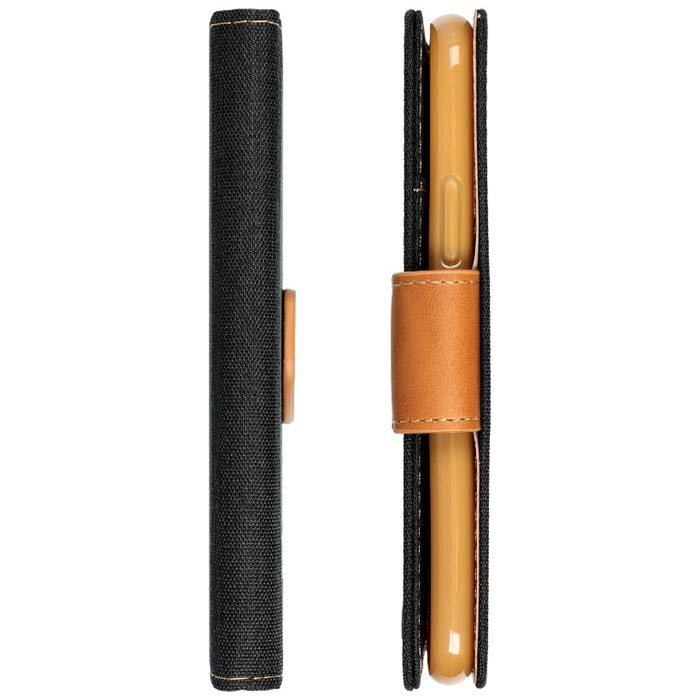 Die iPhone Klapptasche Canvas zeichnet sich speziell durch die textile Signatur aus. Es liegt sehr griffig in der Hand und die seitliche Magnetlasche schützt zusätzlich vor einem ungewollten Öffnen der Klappe.