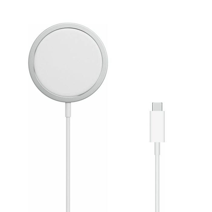 MagSafe Ladegerät lädt kabellos, induktiv nach Qi-Standard alle iPhone ab der Serie 8 aufwärts. Auch Airpods mit kabellosem Ladecase können damit geladen werden.