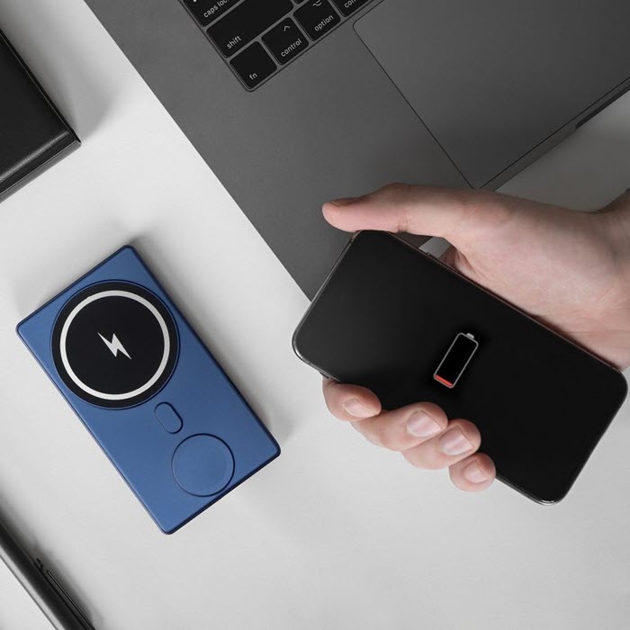 Diese MagSafe Power Bank ist mit Magnete nach MagSafe-Standard ausgestattet und hält perfekt an der richtigen Position Ihres iPhones.