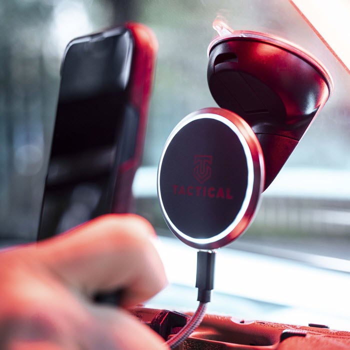 Tactical Flare MagForce lädt iPhones nach Qi-Standard. Das kabellose Laden ist schon mit iPhones ab der Serie 8 möglich.
