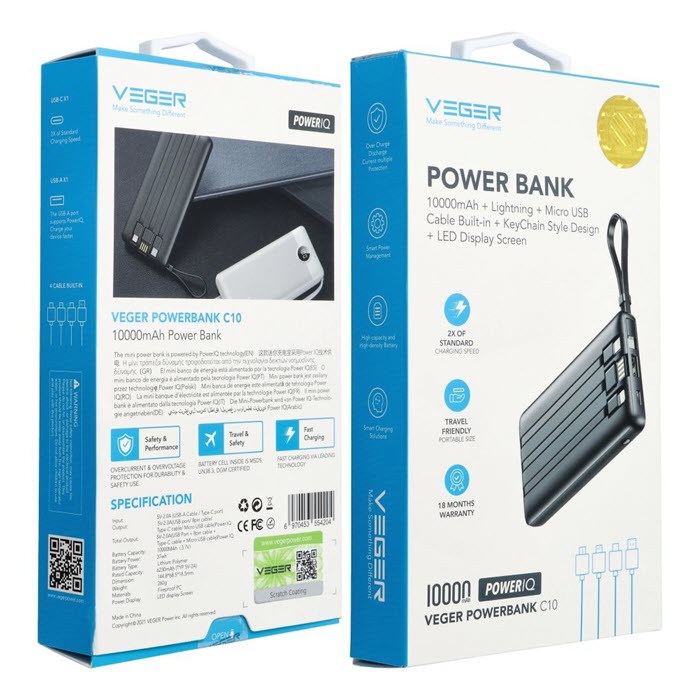 Hauptmerkmale der Powerbank C10 von VEGER: