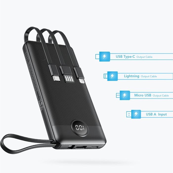 Diese Powerbank benötigt kein separates Kabel! Nicht zum Aufladen und auch nicht zum Laden der unterschiedlichen Geräte!